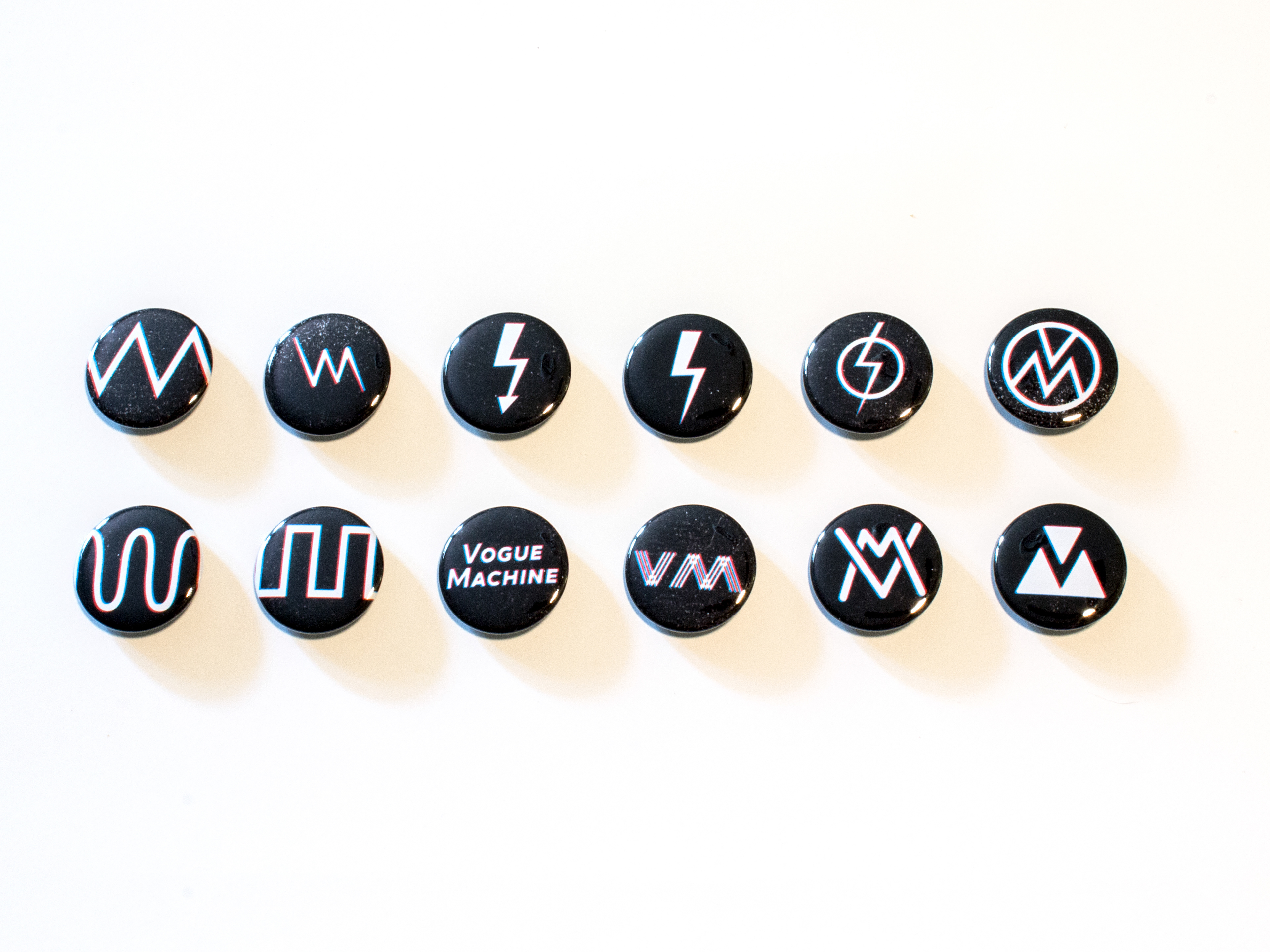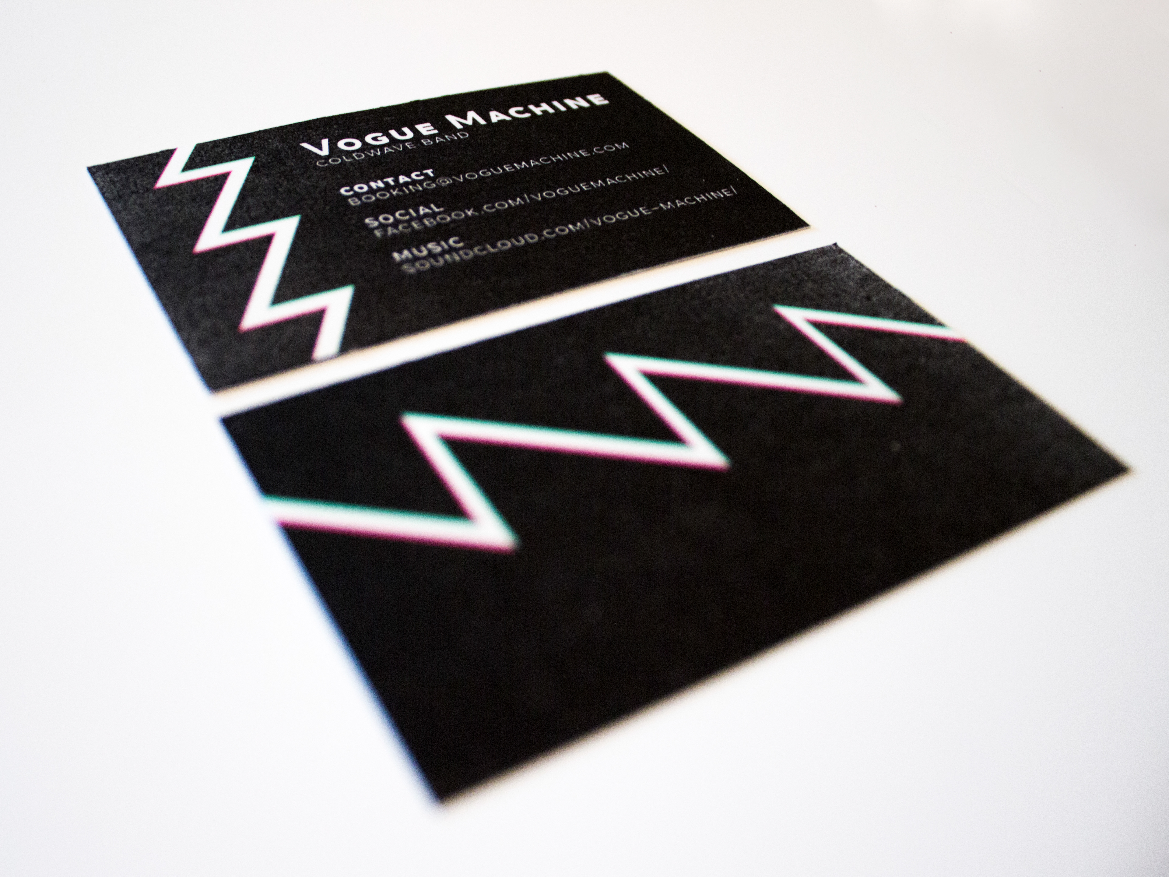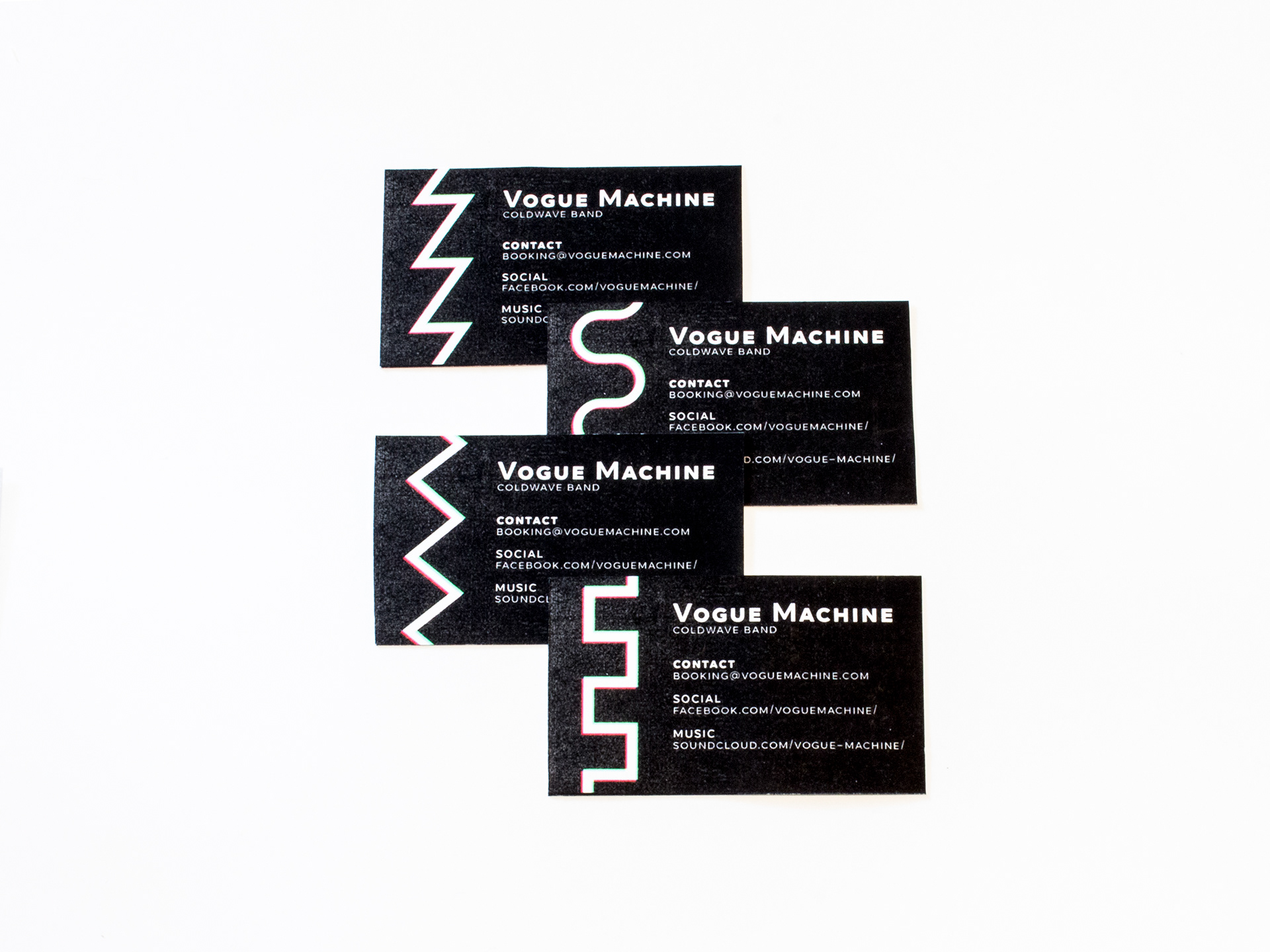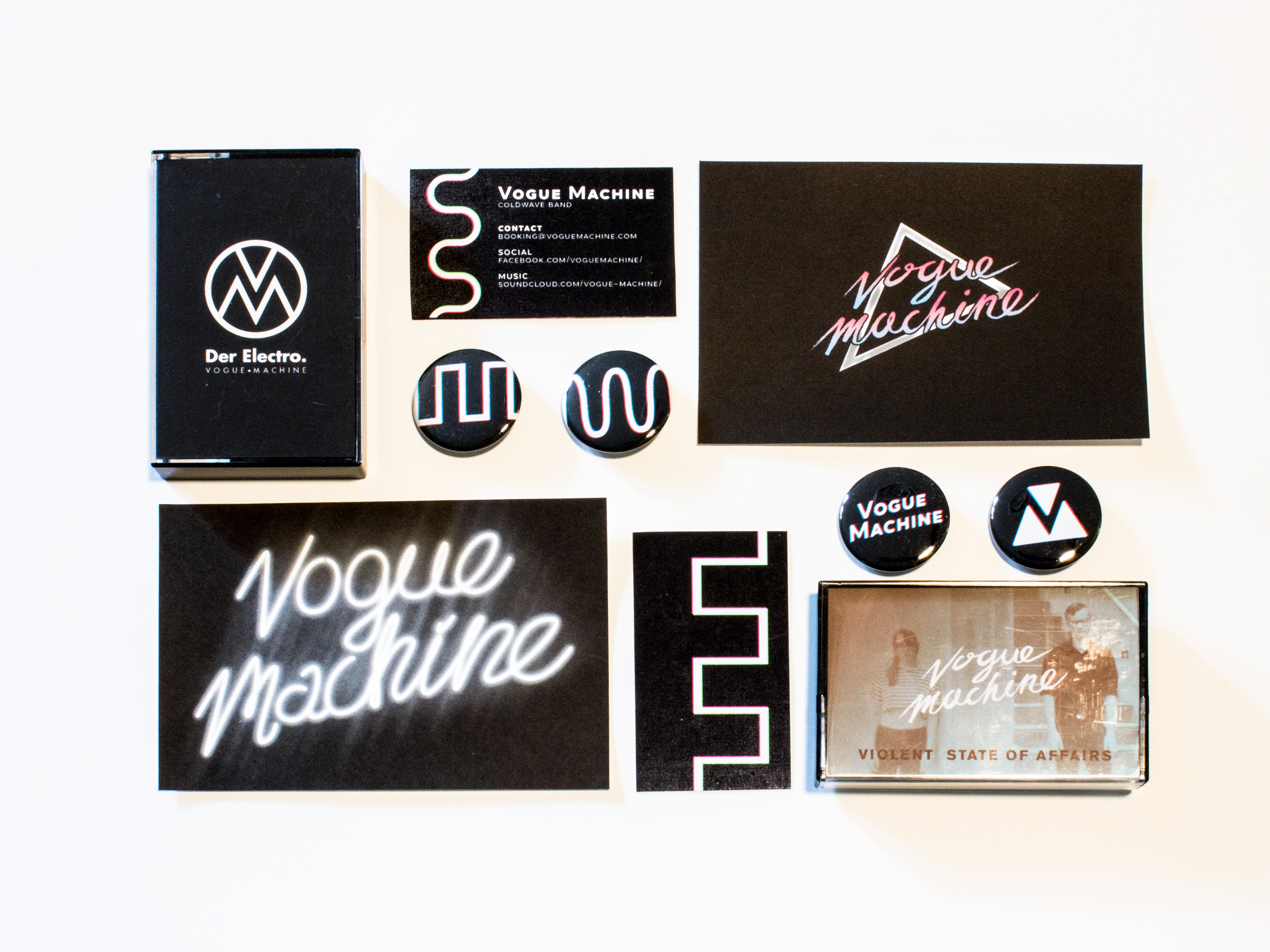 My band Vogue Machine is a DFW-based electronic band that is heavily influenced by 80’s musicians. A lot of the symbols used in the identity refer to the analog nature of both our equipment and sound.